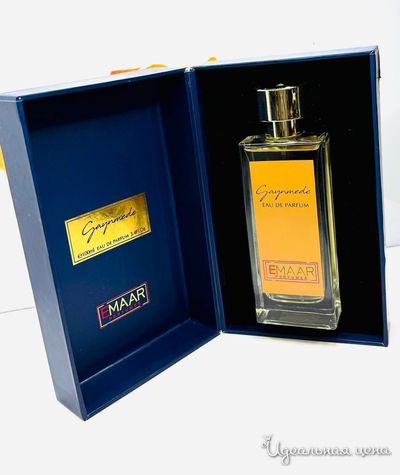 GAYNMEDE EMAAR PERFUMES — элитные унисекс духи с древесно-пряным ароматом, выпущенные в 2023 году французским брендом модной одежды и аксессуаров Marc-Antoine Barrois в сотрудничестве со знаменитым парфюмером Quentin Bisch. Аромат вдохновлен легендой о Гайнимеде — герое греческой мифологии, который обладал безукоризненной красотой, что позволило ему возвыситься до ранга чашеносца богов и стать любовником Зевса, подарившего ему бессмертие. Уникальная парфюмерная композиция раскрывается живостью и блеском мандарина и шафрана, в то время как фиалка и китайский османтус привносят мягкость в эту обонятельную структуру. Абсолют бессмертника, дерево акигала и сухая чистая пудровость минералов дополняют красоту «Gaynmede»