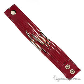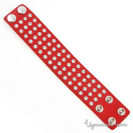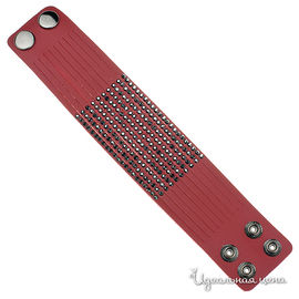Браслет красный кожаный с металлическими вставками