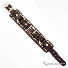 Браслет коричневый кожаный с золотыми вставками
