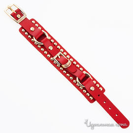 Браслет красный кожаный с золотыми вставками