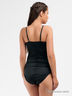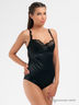Великолепная грация из плотного слегка эластичного материала с корректирующими вставками внутри. Формованная кружевная чашка на косточках наполовину усилена поролоном с хлопковой подкладкой. Несъемные бретели регулируются по длине, застежка в проеме на три крючка в две позиции, ластовица с хлопковой подкладкой.