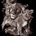 Картинка снабжена направляющими линиями. Скребком снимается краска по направляющим линиям и получается гравюра с объемным изображением.