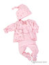 Очаровательный жакет прямого силуэта на тонкой хлопковой трикотажной подкладке. Модель с округлой горловиной, центральной застежкой на пуговицы и накладными кармашками на полочке выполнена из орнаментального трикотажа. Отличный вариант на каждый день малыша. Манжеты, горловина и кармашки имеют ажурную отделку.