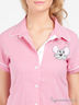 Детали: отложной ворот-стойка, застежка на пуговицы, короткий прямой рукав, два кармана, декоративный набивной рисунок со стразами