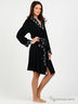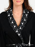 Детали: отложной ворот, манжеты, окантовка накладных карманов и пояс декорированы принтом