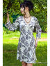 Отличный халат с запахом прекрасно подойдет на каждый день. Изделие с рукавами длиной 3/4 дополнено поясом. Отличный вариант для домашнего гардероба.