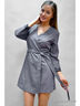 Халат до уровня колен с запахом из ткани выполненной по современным технологиям в сочетании шелка с хлопком с вытравленным рисунком. Рукав длинный втачной по низу с широкой манжетой выполненный из вышивки на хлопке. Горловина имеет V-образный вырез. Халат завязывается внутри с помощью полкодержателей и сверху на продетый через боковые шлёвки пояс