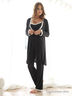 Халат домашний из тонкой трикотажной ткани. Длинный прямой рукав. Изделие декорировано контрастными гипюровыми лентами.