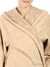 Халат махровый с капюшоном из приятного на ощупь фактурного материала. Модель с запахом на поясе. Два больших накладных кармана.