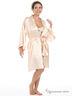 Вечерний атласный халат. V-образный вырез с запахом, рукава 3/4, талия завязывается на широкий атласный пояс.