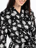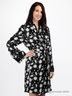 Длинный халат из натурального шелка с оригинальным принтом. Длинные рукава. Талия подчеркнута поясом.