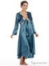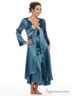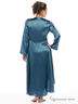 Атласный гладкий халат. V-образный вырез украшенный бежевым кружевом, рукава 3/4, нежные шелковые завязки под грудью. Прекрасное дополнение к сорочке.