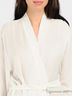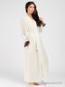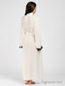 Детали: v-образный вырез горловины с запахом, длинный рукав оторочен кружевом, два кармана, в шлевки продет пояс
