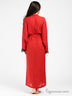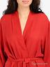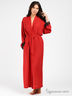 Детали: v-образный вырез горловины с запахом, длинный рукав оторочен кружевом, два кармана, в шлевки продет пояс