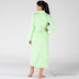 Женственный, в то же время очень удобный, длинный махровый халат из коллекции NicClub Danielle, Салатового цвета. Модель с запахом, завязывается на длинный пояс. Два больших кармана по бокам, прекрасно подойдут для всяких мелочей, на правом кармане - вышивка NicClub.