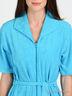 Детали: отложной воротник, застежка на молнию, короткий прямой рукав, в шлевки продет пояс, два кармана, по бокам изделия небольшие разрезы