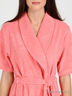 Детали: шалеобразный ворот с запахом, короткий прямой рукав, в шлевки продет пояс, два кармана