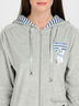 Детали: глубокий капюшон на кулиске, застежка на молнию, длинный рукав присборен на манжету, два кармана, декоративная аппликация с вышивкой