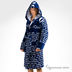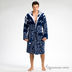 Махровый домашний халат с оригинальной расцветкой с капюшоном, два накладных кармашка, шлевки для пояса и пояс из основного материала в комплекте.