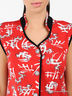 Домашний халат прямого силуэта выполнено из гладкого хлопка, застежка на пуговицы, округлый вырез горловины, без рукавов. Спереди расположены открытые карманы. Изделие украшено ярким принтом. Отличный вариант для тех кто ценит комфорт и качество.