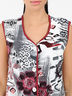 Домашний халат прямого силуэта выполнен из гладкого хлопка, застежка на пуговицы, округлый вырез горловины, без рукавов. Спереди расположен открытый карман. Изделие украшено ярким принтом. Отличный вариант для тех кто ценит комфорт и качество.