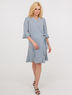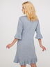 Женственный халат, выполнен из приятного для тела материала. Средней длины, рукав 3/4 и низ халата декорированы оборкой.