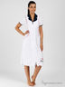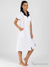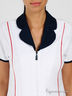 Детали: отложной ворот, V-образный вырез горловины, короткий рукав, застежка на молнию, два передних кармана, декоративная аппликация
