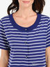 Детали: круглый вырез горловины, короткие рукава, застежка на декоративных пуговицах, один накладной кармашек.