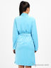 Детали: отложной воротник, переходящий в планку изделия, длинный прямой рукав, в шлевки продет пояс, два кармана