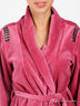 Отличный халат прямого кроя с отложным воротом и длинным рукавом. Выполнен из эластичного велюра. Завязывается на пояс с запахом, два накладных кармана. Декорирован вышивкой и стразами. Великолепный вариант для тех, кто ценит комфорт и качество.