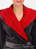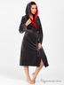 Великолепный халат с капюшоном из эластичного велюра. Завязывается на пояс с запахом, два втачных кармана. Рукав-реглан длиной 7/8. Подкладка капюшона и планка внутри контрастного цвета. На спине оригинальная вышивка. Отличный вариант для тех, кто ценит комфорт и качество.