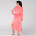 Женственный, в то же время очень удобный, длинный велюровый халат из коллекции NicClub Melany, Кораллового цвета. Модель с запахом, завязывается на длинный пояс. Два больших кармана по бокам, прекрасно подойдут для всяких мелочей. Халат отлично дополняет кружевная тесьма на карманах и воротнике.
