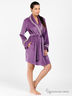 Отличный халат прямого кроя с отложным воротом и длинным рукавом. Выполнен из эластичного велюра. Завязывается на пояс с запахом. Декорирован тесьмой на вороте и рукавах. Превосходный вариант для тех, кто ценит комфорт и качество.