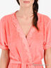 Детали: короткий рукав; завязывается на пояс с запахом; два накладных кармана; декорирован кружевной тесьмой с вышивкой
