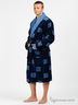 Детали: шалеобразный ворот с запахом, длинный прямой рукав, в шлевки продет пояс, два кармана, декоративный принт