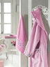 Классический махровый женский халат Lia розового цвета с нежной цветочной отделкой манжетой и карманов непременно придется по вкусу настоящим женщинам. Цвет подчеркнет свежесть Вашей кожи. Накладные карманы будут удобны в быту.