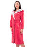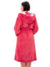 Халат с длинными рукавами и накладными карманами. На передней детали декор - вышивка. Воротник - капюшон с контрастной отделкой из набивного флиса. Завязывается на пояс. Длина ниже колена.