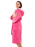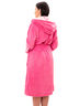 Халат с длинными рукавами и накладными карманами. На передней детали декор - вышивка. Воротник - капюшон с контрастной отделкой из набивного флиса. Завязывается на пояс. Длина ниже колена.