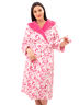 Халат домашний женский с длинными рукавами и накладными карманами. Воротник - капюшон с контрастной отделкой. Завязывается на пояс. Длина ниже колена.