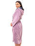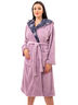 Халат с длинными рукавами и накладными карманами. На передней детали декор - вышивка. Воротник - капюшон с контрастной отделкой из набивного флиса. Завязывается на пояс. Длина ниже колена.