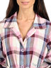 Детали: отложной ворот; рукав 3/4; застегивается на кнопки; два втачных кармана; декорирован оригинальным принтом - клетка; дополнен поясом