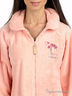 Детали: отложной ворот; застегивается на молнию; два накладных кармана; низ изделия дополнен кулиской со шнурком; халат декорирован оригинальными нашивками и вышивками