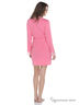 Короткий халат полуприлегающего силуэта с прорезными карманами. Воротник, манжеты рукавов и карманы отстрочены кружевом высокого качества.