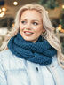 Шарф-хомут выполнен крупной узорной вязкой с нитью люрекса.