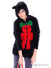 Молодежное худи приталенного кроя. Выполнено из приятного на ощупь, мягкого материала. Капюшон с озорными ушками, застегивается на молнию, спереди 2 прорезных кармана, длинные рукава с манжетами, низ на кулиске. Спереди оригинальная яркая аппликация.