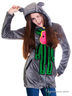 Молодежное худи приталенного кроя. Выполнено из приятного на ощупь, бархатистого материала. Капюшон с озорными ушками, застегивается на молнию, спереди 2 прорезных кармана на молнии, длинные рукава, низ на кулиске. Спереди оригинальная яркая аппликация.