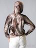 Детали: худи с капюшоном на завязке, застежка на молнии, низ изделия и длинный рукав посажены на широкую резинку, изделие оригинальной расцветки.