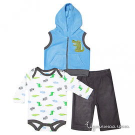 Комплект Hudson baby "МАЛЕНЬКИЙ МОНСТР" для мальчика, цвет синий / салатовый / белый