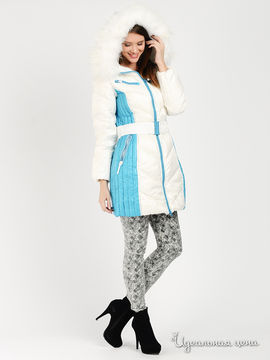 Пуховик MISS SUN женский, цвет белый / бирюзовый