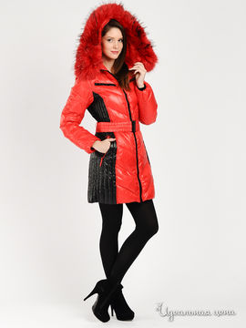 Пуховик MISS SUN женский, цвет земляничный / черный